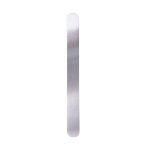 Profesjonalny pilnik/baza wykonany ze stali nierdzewnej. Cechuje się wysoką odpornością na zużycie - stal ta wykorzystywana jest ponadto do produkcji narzędzi chirurgicznych. Produkt wygodnie leży w dłoni. Dokupić do niego trzeba nakładki ścierne samoprzylepne o różnej, wybranej przez siebie gradacji. Nośnik posiada gładkie polerowane krawędzie dzięki czemu znacznie trudniej o niepotrzebne uszkodzenia/ zacięcia delikatnej skóry dłoni klientki co często zaobserwować można w przypadku tradycyjnych pilników. Dzięki temu, że jest metalowy nie wygina się i nie odkształca. Nadaje się do sterylizacji w autoklawie.