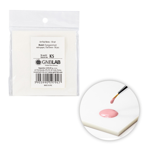 Praktyczny bloczek z laminowanymi karteczkami zastępuje tradycyjne paletki i pozwala w szybki oraz higieniczny sposób mieszać kolory żeli, hybryd czy produktów no nail artu.