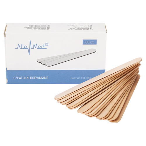 Szpatułki laryngologiczne drewniane jednorazowe do wosku depilacji AlleMed 100 szt
