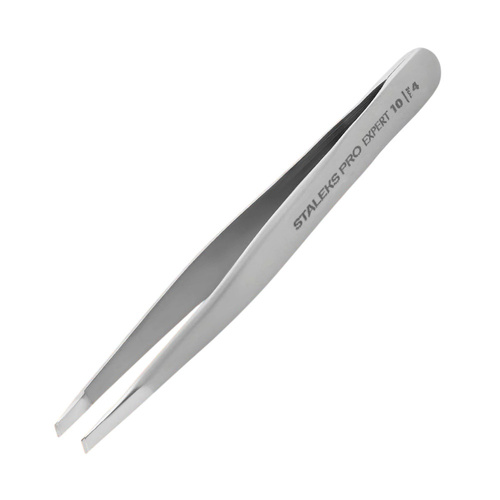 Pęseta skośna Staleks Expert 10 TYPE 4 do regulacji brwi z wąskimi skośnymi krawędziami do korekty rzadkich, cienkich brwi.