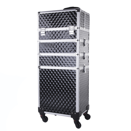 Kuferek kosmetyczny XXXL 4w1 walizka kosmetyczna na kółkach obrotowych 360 stopni Diamond 3D Czarny ze srebrnymi okuciami