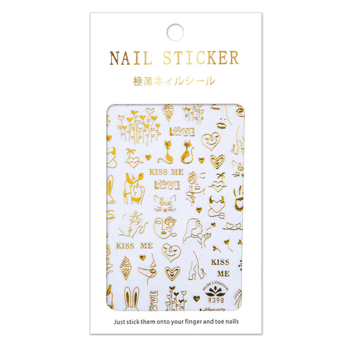 Naklejki do paznokci cienkie samoprzylepne walentynkowe R398 złote
