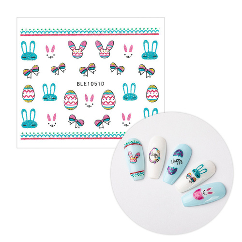 Naklejki do paznokci 3D samoprzylepne brokatowe wielkanocne BLE 1051D