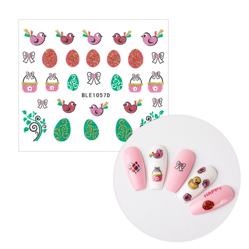 Naklejki do paznokci 3D samoprzylepne brokatowe wielkanocne BLE 1057D