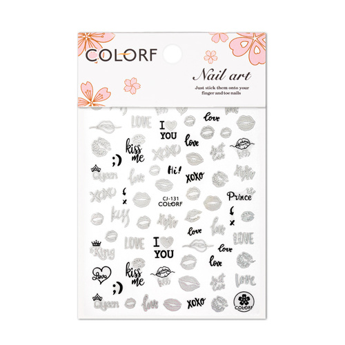Naklejki do paznokci samoprzylepne walentynkowe srebrne czarne CJ-131