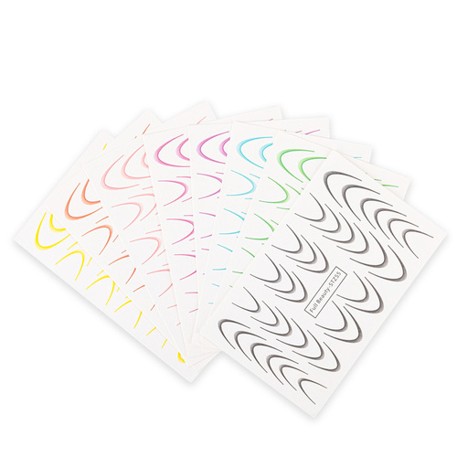 Na każdym arkuszu mieści się 34 naklejek w różnych rozmiarach, które możesz dopasować do wielkości paznokcia.