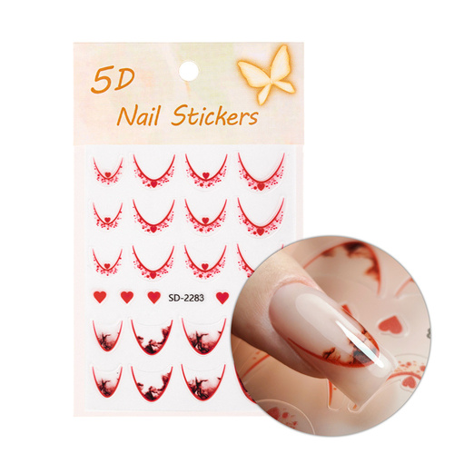 Naklejki samoprzylepne na paznokcie 5D/ French/ Francuska linia uśmiechu 20szt red SD-2283