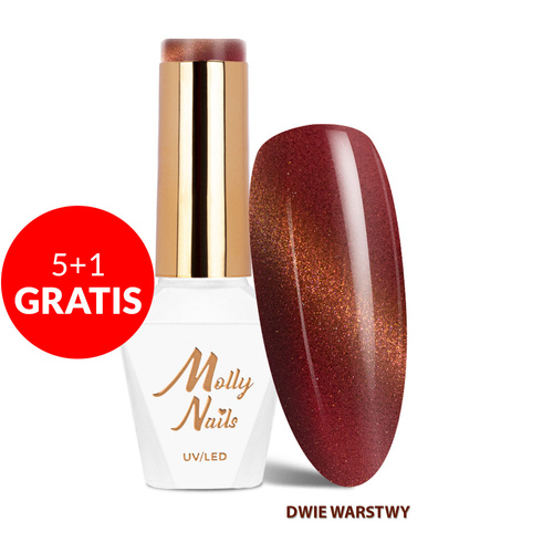 5+1gratis Lakier hybrydowy LED/UV Gel Polish Cat Eye Seduction Nr 244 Rust Red Molly Nails HEMA/Di-HEMA Free 8g