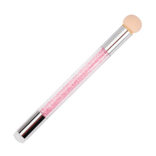 Dwustronny pędzel gąbka do ombre i nail art stempel z cyrkoniami różowy