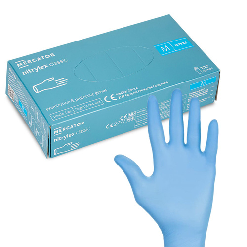 Rękawiczki jednorazowe nitrylowe diagnostyczne i ochronne Mercator rozmiar M niebieskie 100 szt