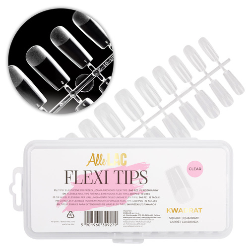 Tipsy do szybkiego przedłużania paznokci Flexi Tips AlleLac kwadrat 240 szt