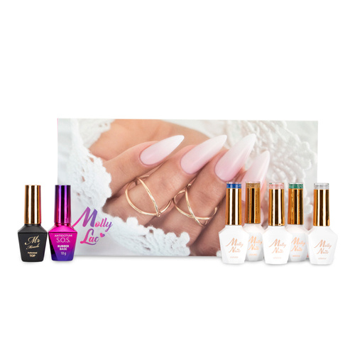 Zestaw 5 lakierów hybrydowych Flashing Molly Nails+ Baza i Top Gratis