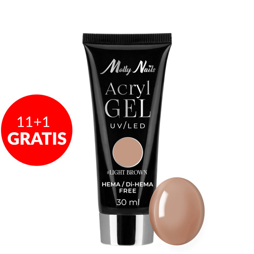 11+1gratis Akrylożel Polygel żel budujący do przedłużania AcrylGel Molly Nails HEMA/Di-HEMA Free Light Brown 30 ml