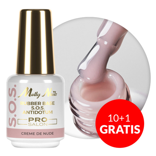 10+1gratis Baza kauczukowa elastyczne paznokci do ozdób S.O.S. Antidotum Pro Salon Molly Nails Creme de Nude 15g