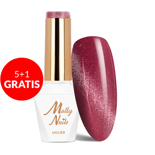 5+1gratis Magnetyczny lakier hybrydowy z efektem kociego oka Cat Eye Crystal Water Molly Nails HEMA/Di-HEMA Free 8g Nr 166