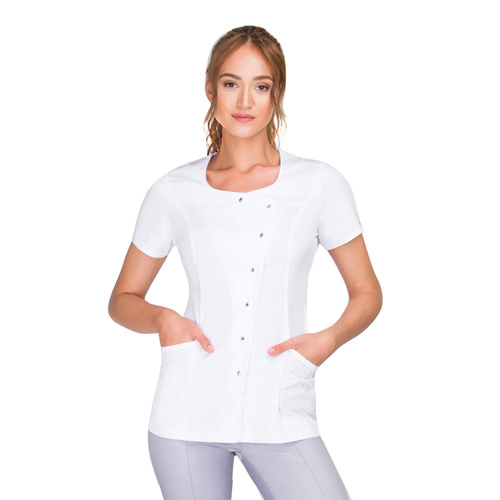 Fartuszek Spa 9 zapinany jest na napy cyrkonie, które zapewniają poręczne zakładanie i zdejmowanie tuniki.